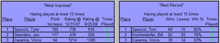 ![]() Semi annual Player recognitions. Winners for Period Jan 1, 2008 to June 30, 2008 | |